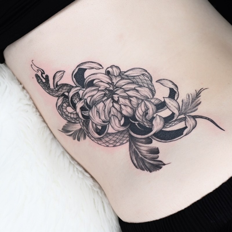 • 뱀과 꽃타투