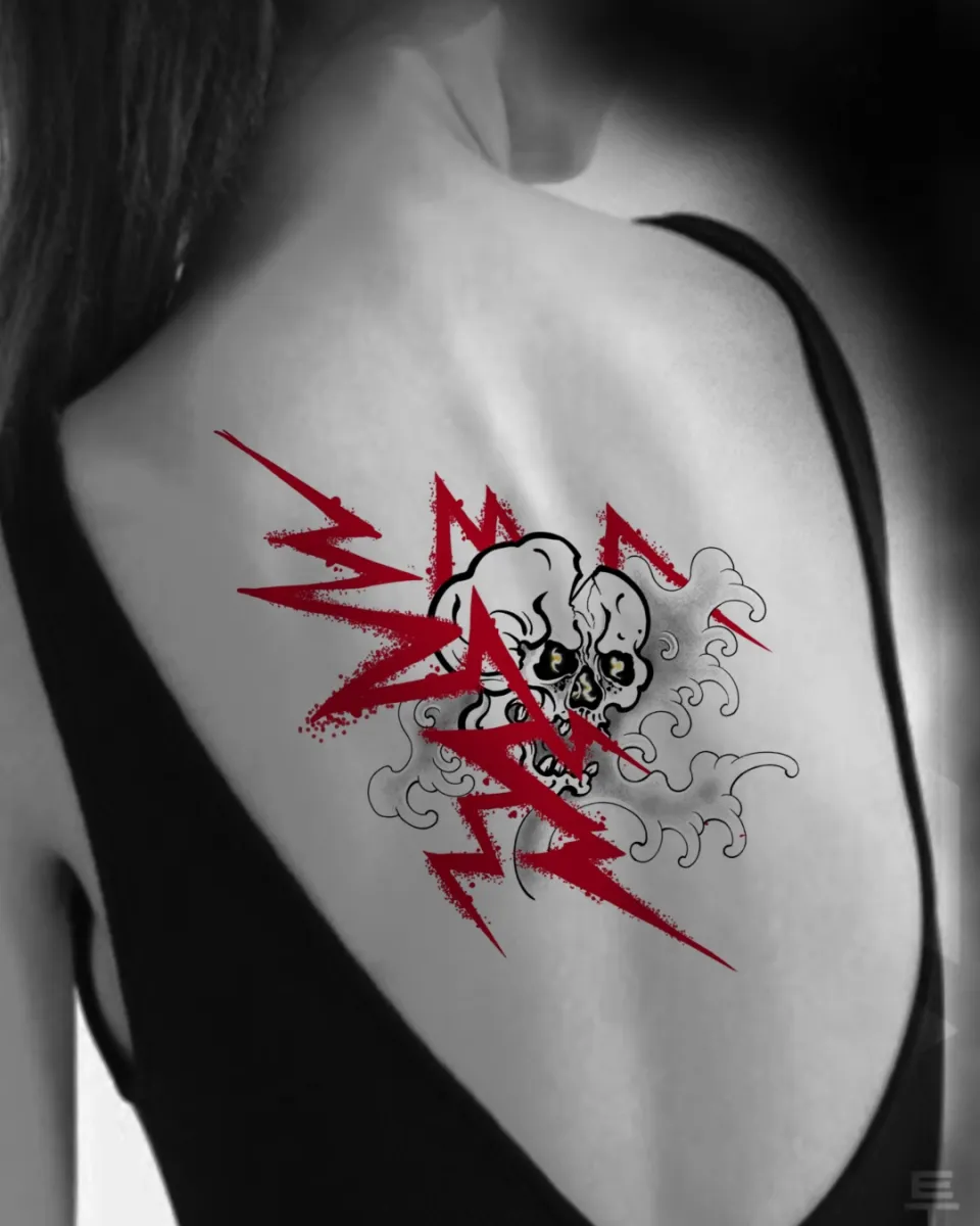 묘당타투 해골과 번개